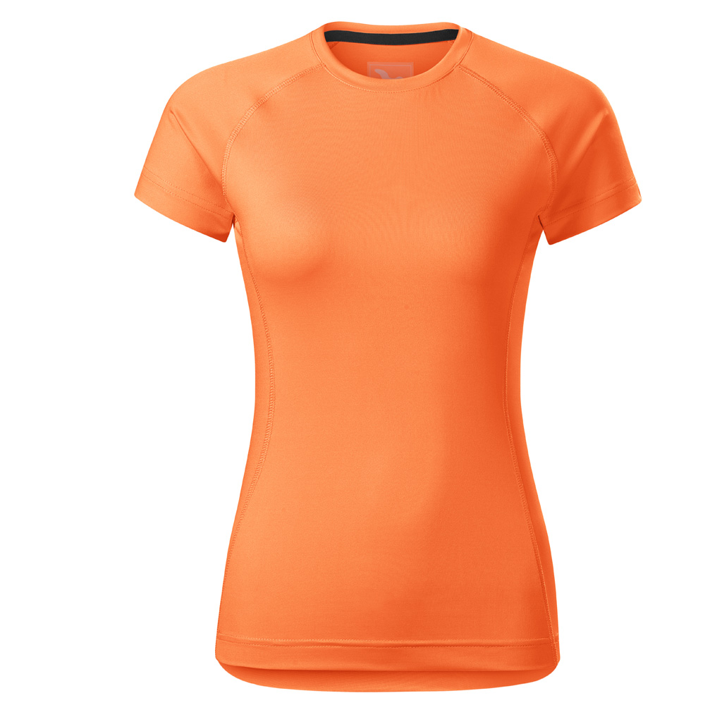 Dámské sportovní tričko prémiové kvality s krátkým raglánovým rukávem, mírně prodlouženým zadním dílem a s kulatým průkrčníkem. Střih je tvarovaný bočními díly a má dekorativně prošité ploché švy. Hladký strečový rychleschnoucí materiál zajišťuje odvádění potu a udržování tělesné teploty. Tričko se hodí na individuální sportovní trénink nebo na sportovní akci. Doporučujeme nosit tričko přímo na tělo, proto objednej raději o velikost menší.